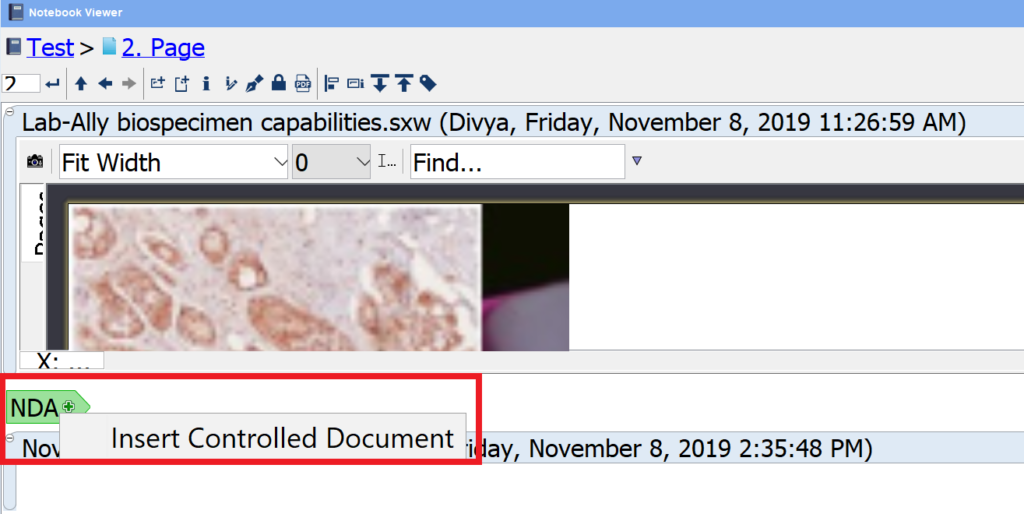 - Now drag the Controlled Document to the open Notebook Page in the Notebook Viewer and drop it.