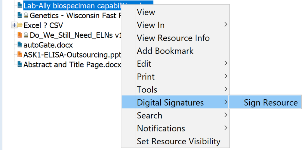 1. right-click on the Notebook page in the Document Tree and select Digital Signatures > Sign Resource OR select the Page and click on the Sign