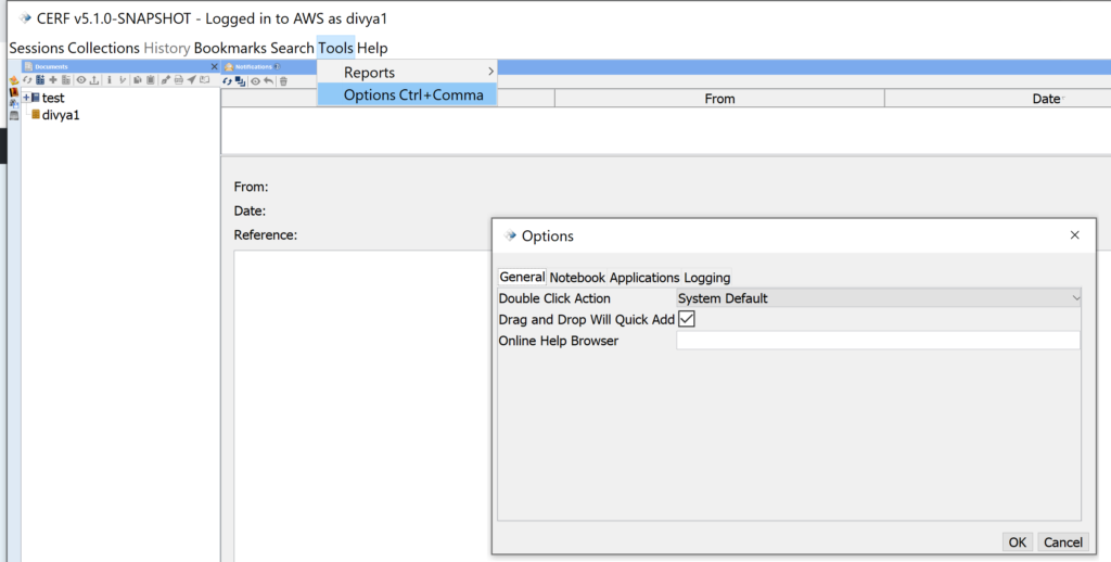 In CERF, you can customize your own experience in several ways. To set your user preferences on PC, Select Tools > Options from the main menu in CERF. On Mac, find this under the Application (CERF) menu: