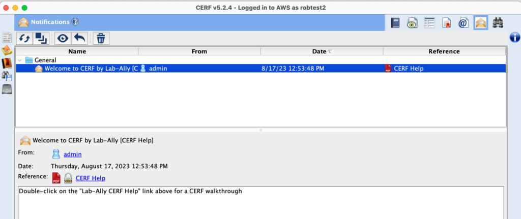 By default, when CERF opens the first thing you will see is your Notifications loaded in the middle panel.